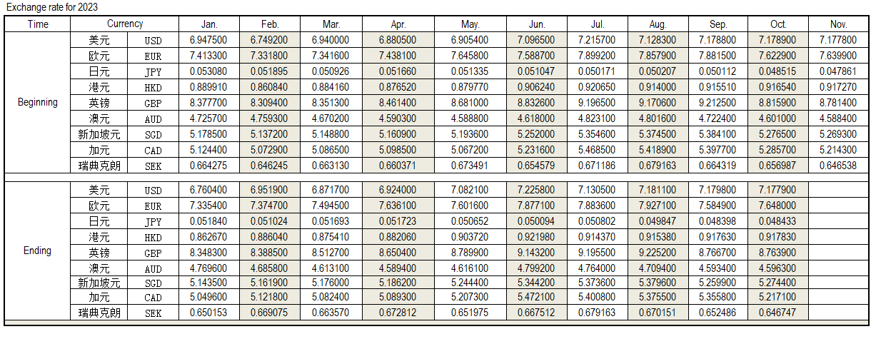 2023年10月外匯匯率,來(lái)源中國(guó)人民銀行供參考。